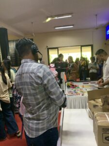 カレッジ内にあるMini Auditoriumでは午後からイベントが開催されており、会場前には花が飾られるなどお祝いの雰囲気もばっちりです(下記画像より)。伝統服のファッションショーやダンスが披露されており、ダンスの発表は多くの有志団体により2時間も行われていました。最後には音楽が流れ始め、学生らも1時間程度曲に合わせて踊っていました。