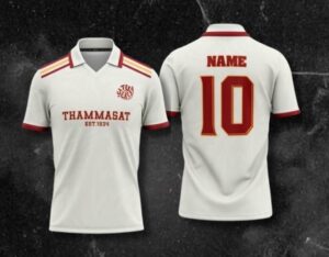 興味深いことに、タイの大学では驚くほど多岐に渡る公式グッズが販売されています。多様なデザインのTシャツやバッグを始めとし、水筒やキーホルダー、ぬいぐるみや傘などありとあらゆるものに大学名や校章が入っています。個人的には日本の大学にあまり大々的な公式グッズのイメージはなく、部活動などに所属している場合を除いてあまり身に付けている学生も見かけたことがないような気がしていますが、タイの学生は比較的好んで身に付けているように思います。購買部で購入できる公式グッズだけでなく、Student Unionと呼ばれる学生会のような組織が毎年異なるデザインで大学名入りのTシャツを販売しており、そちらを着用している学生も非常に多いです。サッカーTのようなデザインになっており、名前や数字をカスタムできるようになっています。学部ごとにも学生会があり、それぞれの学部Tシャツがあったり、その他有志の学生からも色々なデザインの大学Tシャツが販売されていたりするので、お気に入りのデザインを見つけて購入してみるのも記念になっていいと思います。私は有志の学生が販売していた大学名入りのTシャツで気に入ったものがあったのと、記念に学部のTシャツを一枚ずつ購入しました。学生が販売しているものについては全てインスタグラムで情報が得られるので、要チェックだと思います。素材的にもツルっとした涼しくて過ごしやすいものなので、購入出来て良かったと思います。