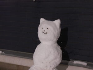 年始に気温が上がって、しっとりした雪が降ったので雪だるまを作ることができました。