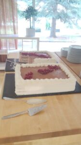 ↓ 学部オリエンテーションで食べた巨大ケーキ