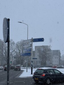 次に、オランダの天気についてです。留学前は「雨が多くて一年中どんよりしている」というイメージを持っていましたが、実際に来てみると、年末までは意外にも晴天の日が多く、寒さはあるものの気持ちよく過ごせる日が続いていました。ところが年が明けたのと同時に、ここでは珍しいとされる大雪が降り、その後は一気にヨーロッパらしい曇りの日が増えました。空が灰色の日が続くと気分も少し沈みがちになりますが、思っていたほど雨の日が多いという印象はなく、現段階では比較的過ごしやすいと感じています。現地の人の話によると、オランダの中でも地域によって気候や住みやすさに違いがあるそうです。北部のアムステルダム周辺は風が強く天気も変わりやすいと聞きましたが、私が住んでいるアイントホーフェンは比較的落ち着いていて住みやすいという意見が多くありました。実際に生活してみても、自転車での移動がしやすく、街の規模もちょうどよいため、日常生活で不便を感じることはあまりありません。オランダの気候については、事前に想像していたことと実際に体験してみた印象に違いがありました。今後も季節が進むにつれて天候の変化を感じると思いますが、その土地ならではの環境に順応しながら留学生活を充実させていきたいと考えています。