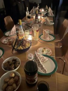 今月の自由テーマはスウェーデンのクリスマス事情について書こうと思います。スウェーデンの方にとってクリスマスは一大イベントの一つなのでハロウィンの頃から準備が始まります。スウェーデンではハロウィンのイベントは特にしないので、その頃にはクリスマスの飾りが売られ始めます。11月に入ると各地でクリスマスマーケットが開催されます。11月中旬、私の住んでいるところから車で30分のところでこの地方最大のクリスマスマーケットが1週間行われました。日本でも有名なホットワインやホットチョコはもちろん、こちらでは定番らしいナッツをキャラメルでコーティングし香ばしく炒ったものがとても美味しかったです。そしてオーナメントから幸せを呼ぶ妖精トムテの人形までクリスマス雑貨が全て揃います。セントラルには大きなクリスマスツリーが置かれ、どのお店もクリスマスカラーにキラキラ輝きます。またフレンドファミリーの方がクリスマスパーティーを開いてくださいました。部屋をキャンドルの灯りだけで灯し、手料理のご馳走で机の上が埋め尽くされている光景は留学生活の中で1番北欧を感じた瞬間でした。北欧クリスマスの定番クリスマスハムは前の日から8時間かけて大きなお肉の塊を低温調理するとのことで絶品でした。またお酒好きなスウェーデンではお祝い事にエルダフラワーの38%もあるお酒をショットで掛け声と共にいただきます。「イッヌゥ、ヌゥーー!(今じゃない、今だーー!)」喉が焼けるような強さのお酒ですが、陽気なスウェーデン文化を楽しむことができました。みんなでワイワイゆっくり飲んで食べておしゃべりするのがスウェーデン流のクリスマスパーティーだそうです。最後におすすめしたいのが、この時期になるとどこのスーパーでも見かけるコーラと同じ色の飲み物ユールムストです。個人的な感想ですが、コーラの甘みをベリー系の甘味に置き換えた炭酸飲料という感じでとても美味しいです。