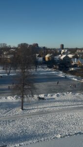 私の年末年始については31日に池が凍っていると聞き、同じ階の友達と朝から池の上で写真を撮りツルツル滑り、地元の老夫婦に真ん中は氷が薄くて危ないと優しさのある注意を受けました。その夜は階の子とポットラックをし、新年は街に繰り出して帰宅後は明け方までカードゲームをしたり話して過ごしました。授業はと言うと、クリスマスイブから約2週間休暇があったのでのんびり過ごすことができました。私の取っていた授業はレポート課題が出されましたが友達と話したくて早めに終わらせました。沢山のことを経験して今までで一番思い出に残る年越しでした。