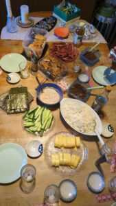 ↓ フレンドファミリーと日本食パーティーした時と、スウェーデン式ミートボールを作った時の写真です。