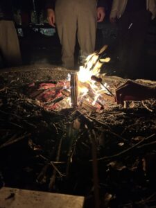焚き火をした時と鍋パーティーの時の写真です!
