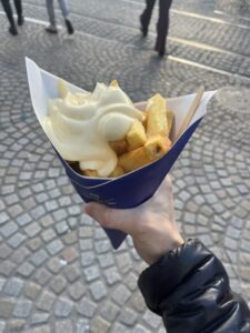 オランダの主食はじゃがいもであり、スーパーに行くとかなりの量のじゃがいもが販売されています。私は基本的に毎日自炊していますが、じゃがいもを食べることは頻繫にあります。その次に主食として食べるのはパスタです。オランダではパスタは安く販売されており、500グラムで0.77ユーロ、日本円で約140円で買うことができます。円安のなかヨーロッパで生活していくうえで節約は必須なので、1食35円ほどで食べられるパスタはコスト面で利点があります。調理方法ですが、私は日本風の味付けしかわからないため、いつも同じような味になってしまいます。お米ももちろんスーパーで売られていますが、個人的にはヨーロッパのお米は好きではなく、全くといっていいほど食べません。学校の食堂で、日本食を意識した丼料理があって食べたのですが、値段がかなり高いうえにあまり自分の好みではありませんでした。よって、留学中は誰しもが日本のお米が恋しくなるだろうと感じました。そして、オランダではパンがかなり美味しいと感じました。スーパーや食堂などの店に行っても、パンの種類はすごく豊富であり、楽しむことができます。しかし、保存料が入っていないのか、カビが生えるのが日本と比べて圧倒的に早いと感じました。とある日に1度、食パンを買ってみたのですが、2日後にはもうカビが所々生えていて、大半を捨てなければいけないときがありました。食パンを買うときは、ある程度の量はすぐ冷凍するべきだと気づくことができました。