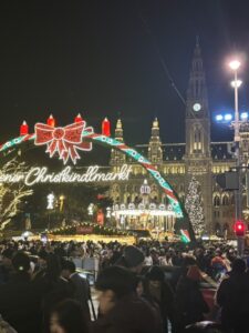 クリスマスと年末年始は授業が開講されておらず、半分以上の生徒は帰省しています。その期間に私はオーストリアのウィーンとドイツのドレスデン、イギリスのロンドンに行ってきました。ウィーンとドレスデンは12月にクリスマスマーケットが開かれていました。クリスマスマーケットではホットワインやホットチョコレートが有名で、どちらともとても美味しくて行く価値があると思います。ウィーンとドレスデンのクリスマスマーケットは、同じクリスマスマーケットでも雰囲気が異なり、それぞれに違った魅力がありました。都市ごとの個性を感じることができたのも、とても印象的でした。
