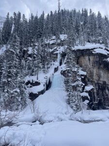 さらに、14日から一週間の休み(リーディングブレイク)があったため、再びバンフを訪れました。気温はマイナス20度と非常に寒かったですが、雪景色はとても美しく、何度訪れても感動します。湖が凍っていたためその上を歩くことができたり、凍った滝を見たり、スケートをしたりと、冬ならではの体験をたくさん楽しむことができました。