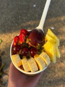 海辺のレストランで食事をしたり、アイスを買って日の入りを見ながら食べたり、素敵なひと時を過ごすことができました。フルーツや海鮮などどれも本当においしかったです。暑かったからかスムージーやアサイーボウルなど毎日一回はフルーツを食べていた気がします。